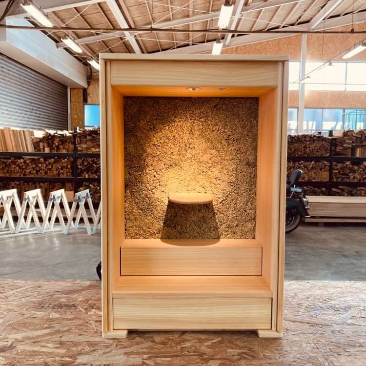仏様の背景を、稲藁で葺いた仏壇