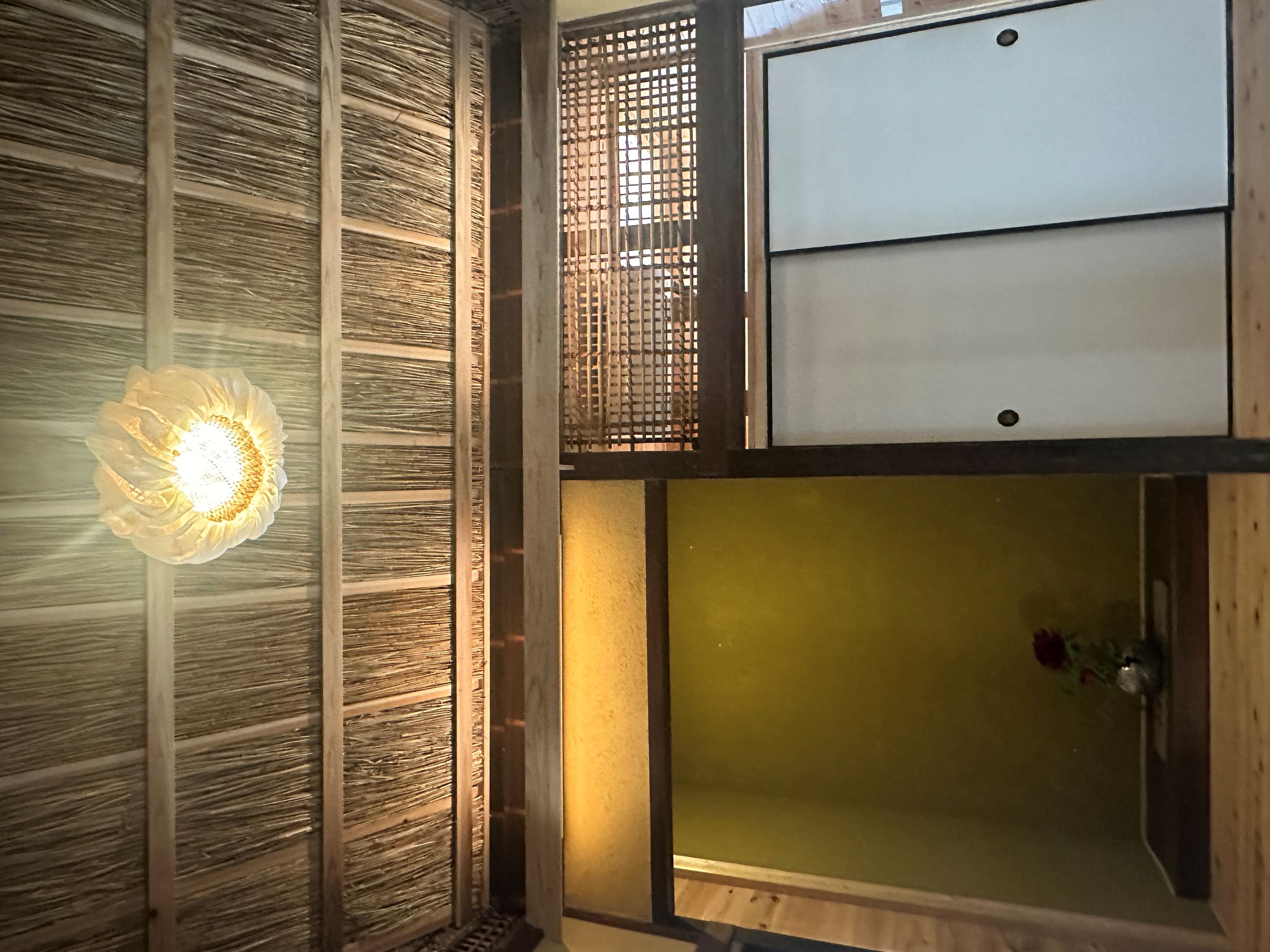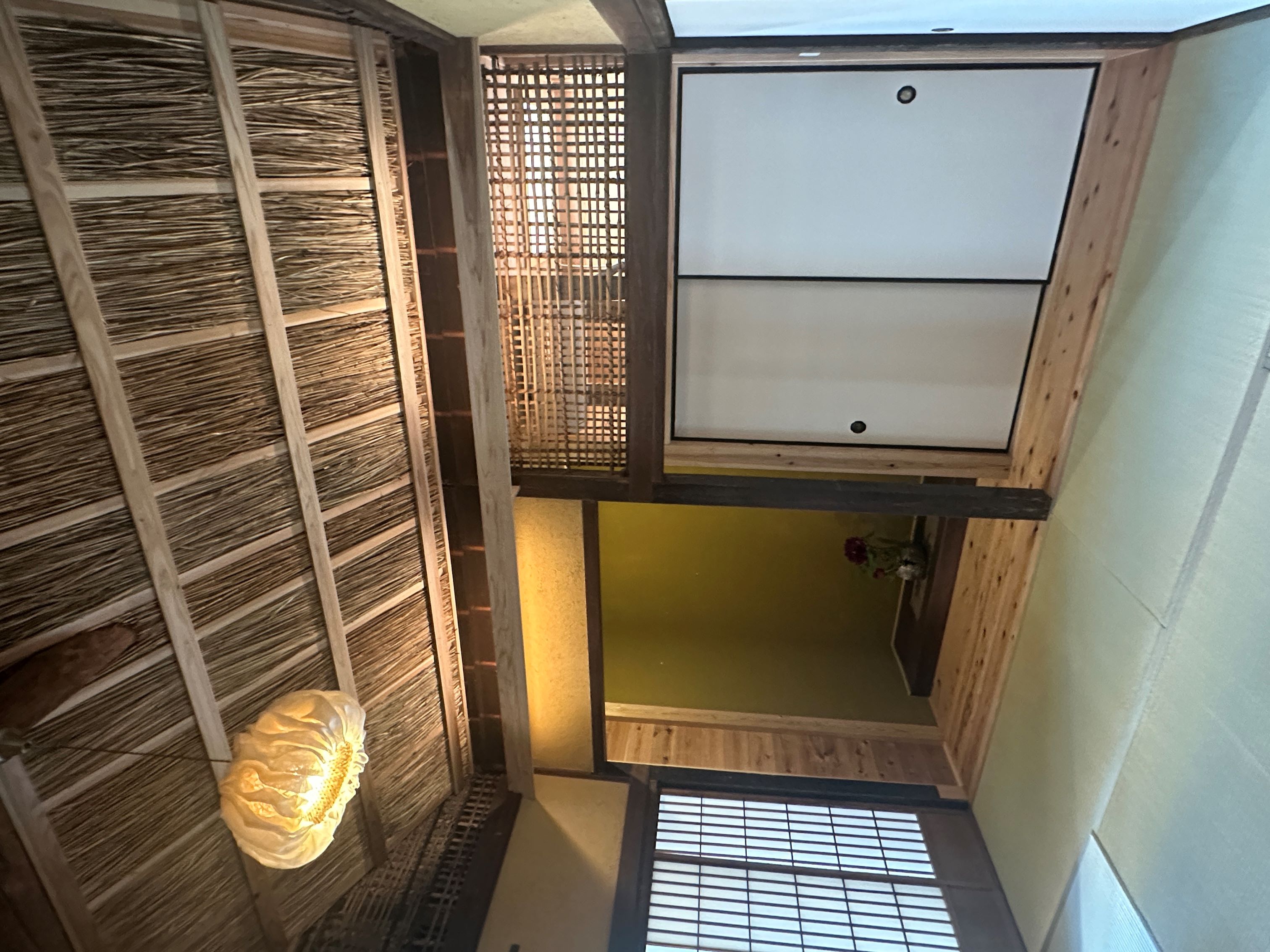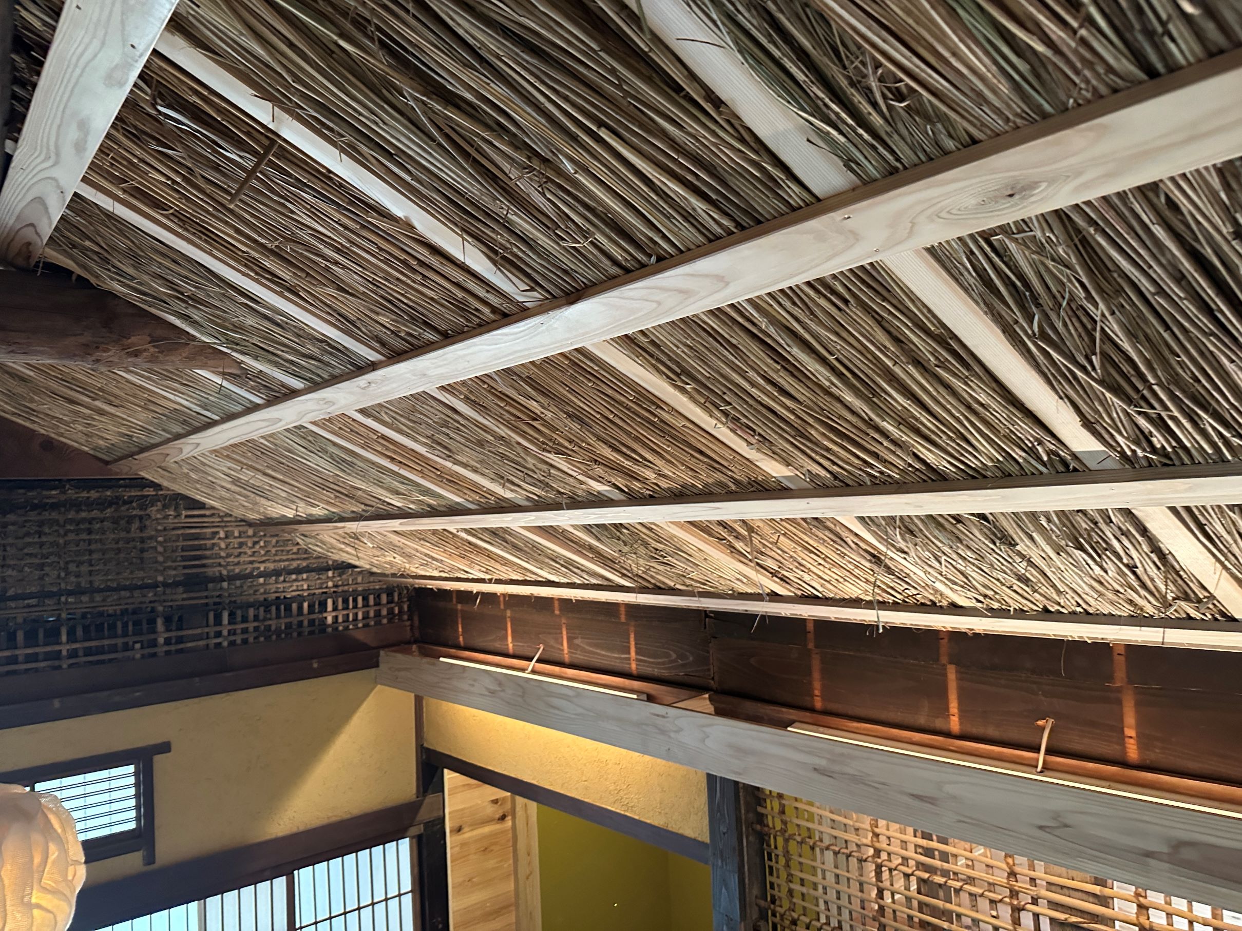 自然素材を追求した、体と心にやさしい空間を体感していただくことをコンセプトにされており、地元のススキと荻で天井を施工しました。